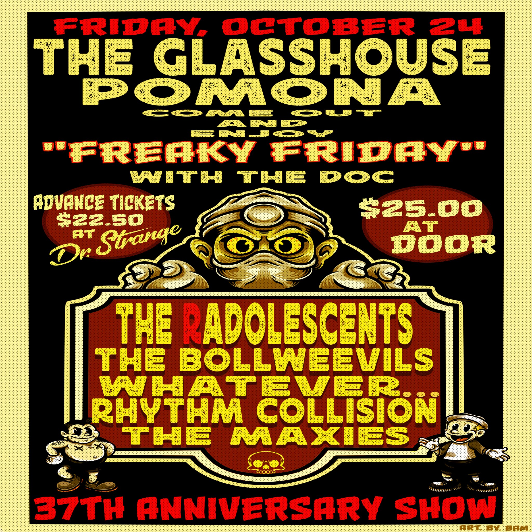 Dr Strange 37th "Freaky Friday" Anniversary ShowTheradolescents , The Bollweevils , Whatever , Rhythmcollision , Themaxies📅 October 24, 2025, doors: 9:00PM🏛️ The Glass House📍 200 W 2nd St, Pomona, CA 91766🔗 More Info